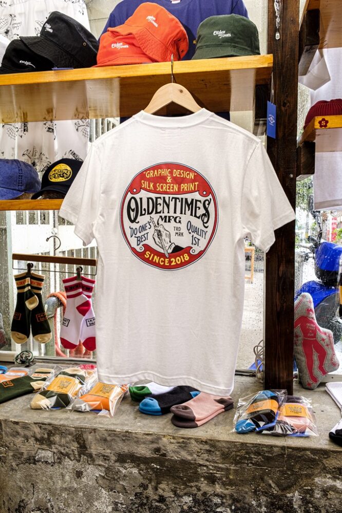 沖縄桜坂を拠点にアメカジ、ストリート、ミリタリーをベースにしたオリジナルのアパレルを展開する、沖縄ローカルブランドのオールデンタイム。独自のグラフィックを落とし込んだTシャツなどを多数展開しており、そのデザインの特徴はわりとポップなものが多く色数も多めだ。またブランドの始まりは2016年から。現在、月に8型は新作がリリースされるそうで、Tシャツをメインにシャツやパンツなどが出そろう。今後はアクセサリーも充実させていくそうだ。