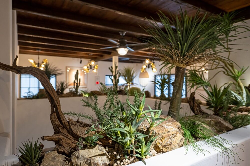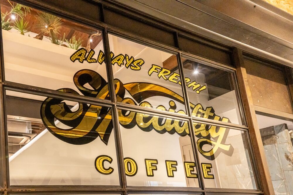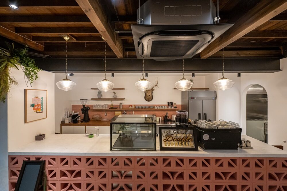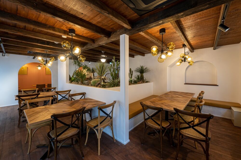 内装は西海岸の砂漠リゾートをコンセプトにカリフォルニア工務店、トカゲをあしらった遊び心あるフェイク植栽はソルソ、サインアートはシェイキンスピードグラフィックスが手がけ、この唯一無二の世界観を創り上げている。