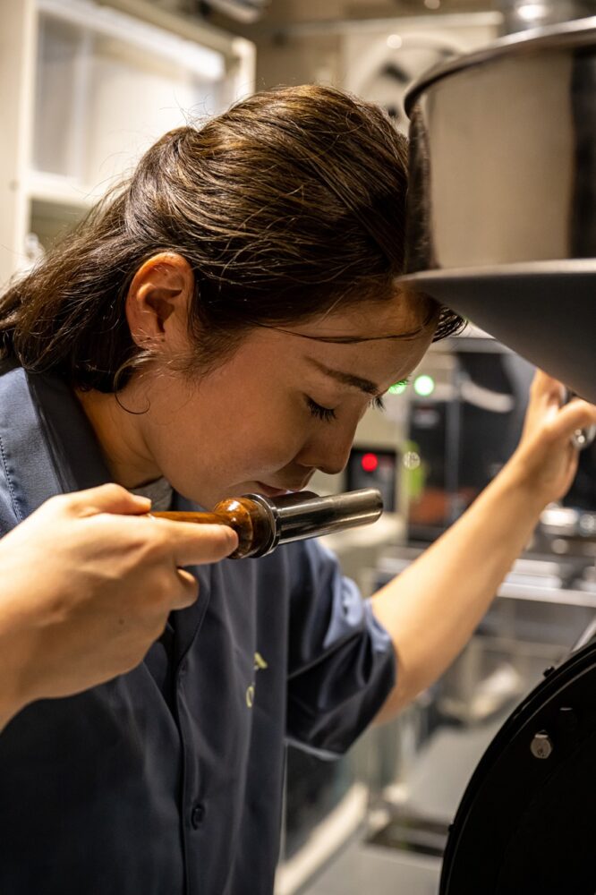 毎日変化する気温と湿度に合わせ、タイマーと温度の上昇を見ながら火をコントロール。神経を尖らせながら作りあげる豆は香ばしさに溢れる。