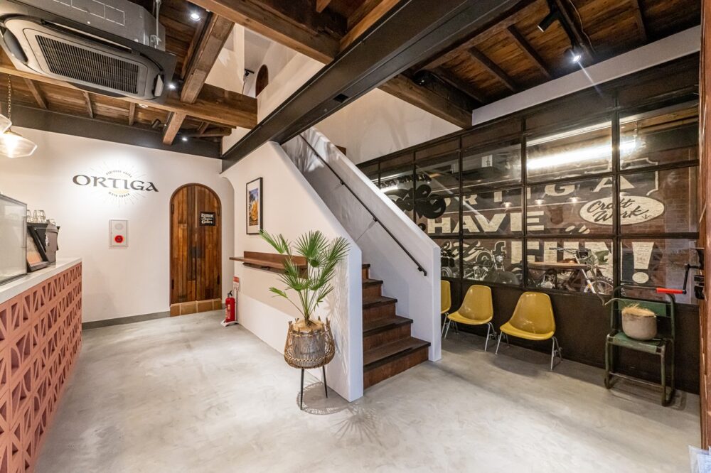 「バイク」と「カフェ」という通常なら相容れることのない2つの要素を絶妙にミックスし、「カリフォルニアにある砂漠のリゾート」というシチュエーションをコンセプトに誕生したのがカフェ「オルティガ」だ。