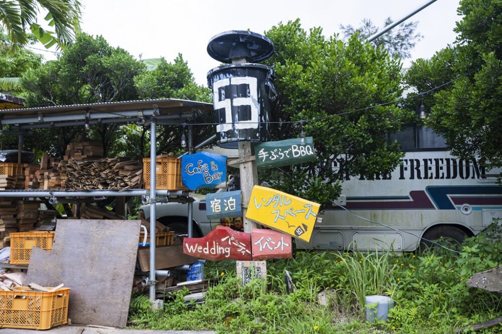 ホステルや庭にはキャンピングカーもあり宿泊もできる。リゾートホテルとは違った沖縄旅が味わえる場所なのだ。