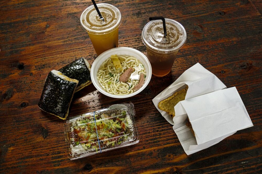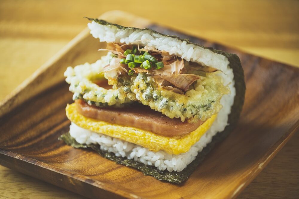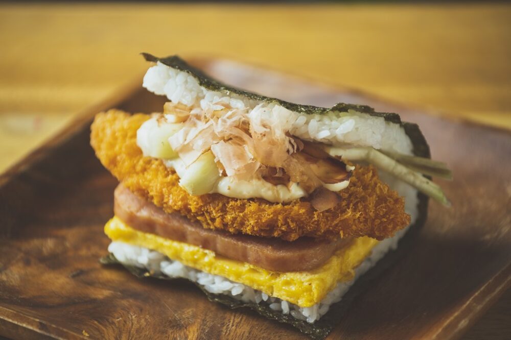 沖縄のソウルフード、ポーク玉子の存在を全国に知らしめたポーたま。実はここが元祖だ。ポーク玉子に様々なおかずを詰め込んだそのバリエーションの豊富さとインパクトのあるビジュアル。食べ歩きにもぴったりだ。