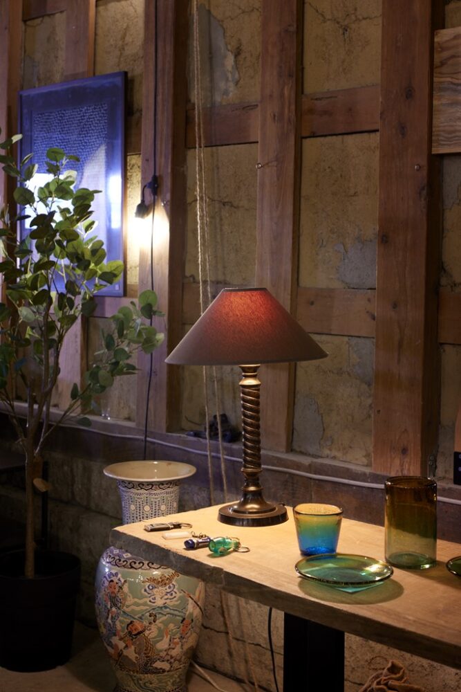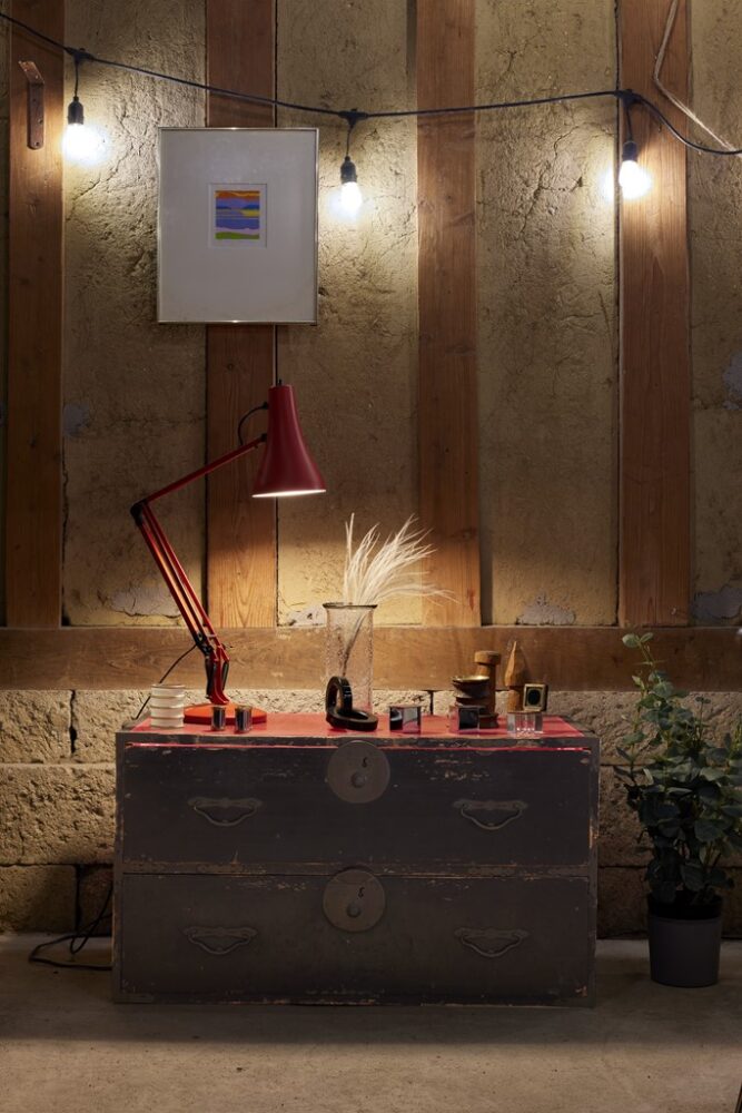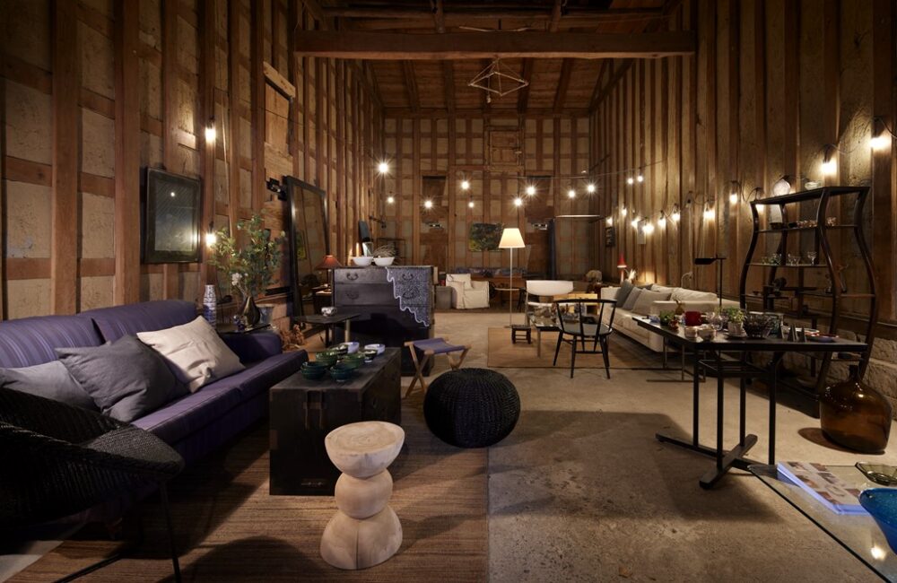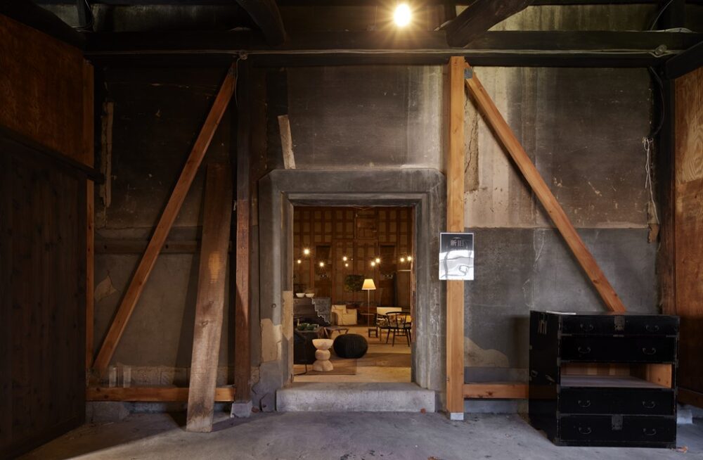 倉庫の古壁の雰囲気とここにディスプレイされているインテリアの雰囲気がぴったり。実際にショールームに来て、この世界観をぜひ体験して欲しい。