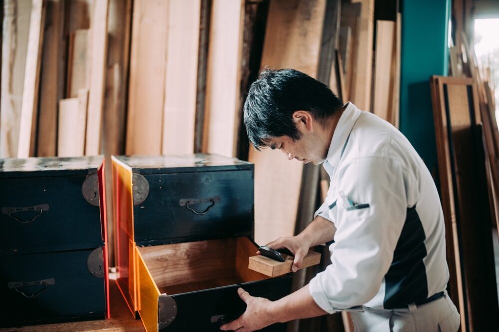 「建築家やデザイナー、アーティストとコラボして和箪笥をアート作品に作り替えたら、新しい価値が生まれると思ったんです。まったくコネはなかったので、100社くらいあたりましたね」
