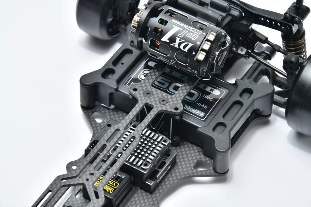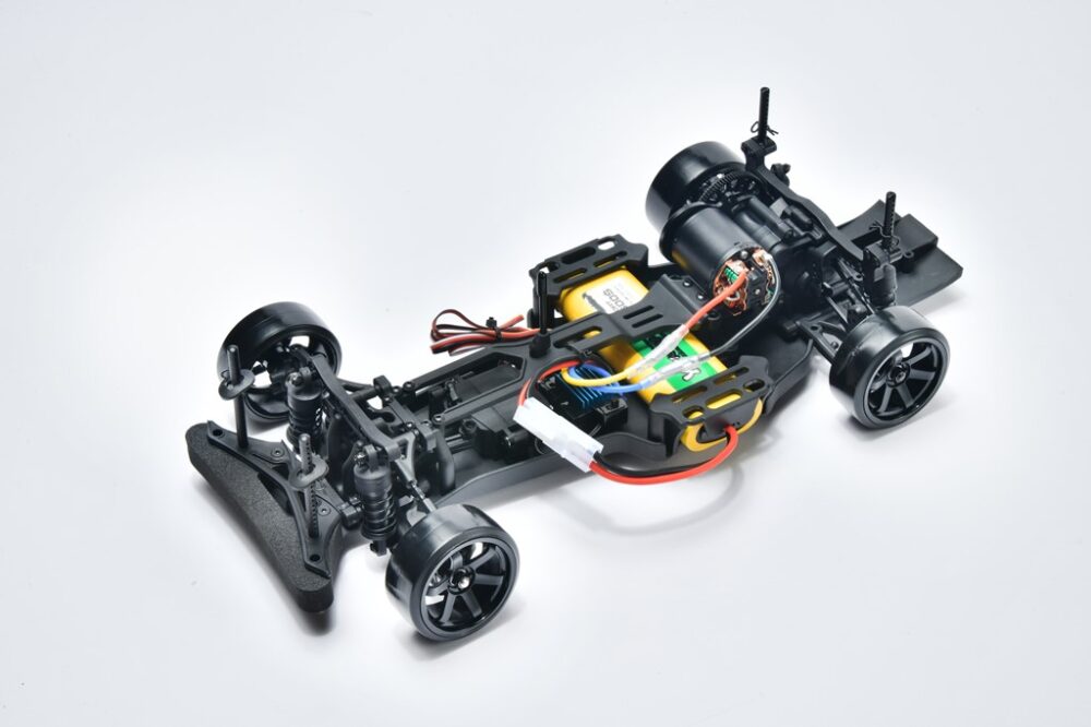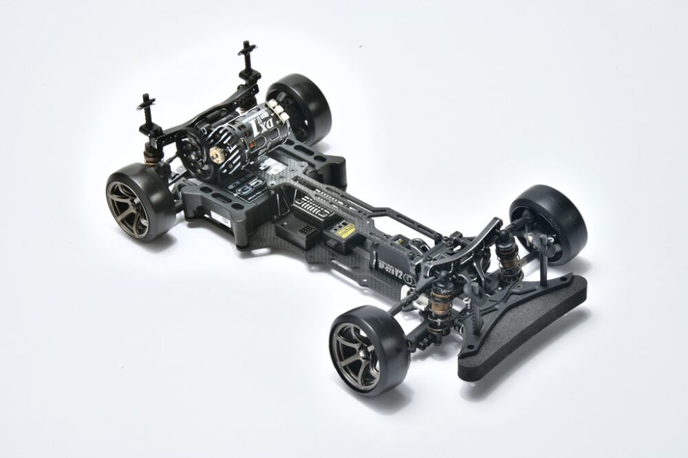 カーボングラファイト製シャシーに、アルミ製パーツを多数搭載したハイエンドドリフトシャシー。こちらは組み立て式のキットとなる。タイヤ、メカ、バッテリー、ボディ等は別売り。