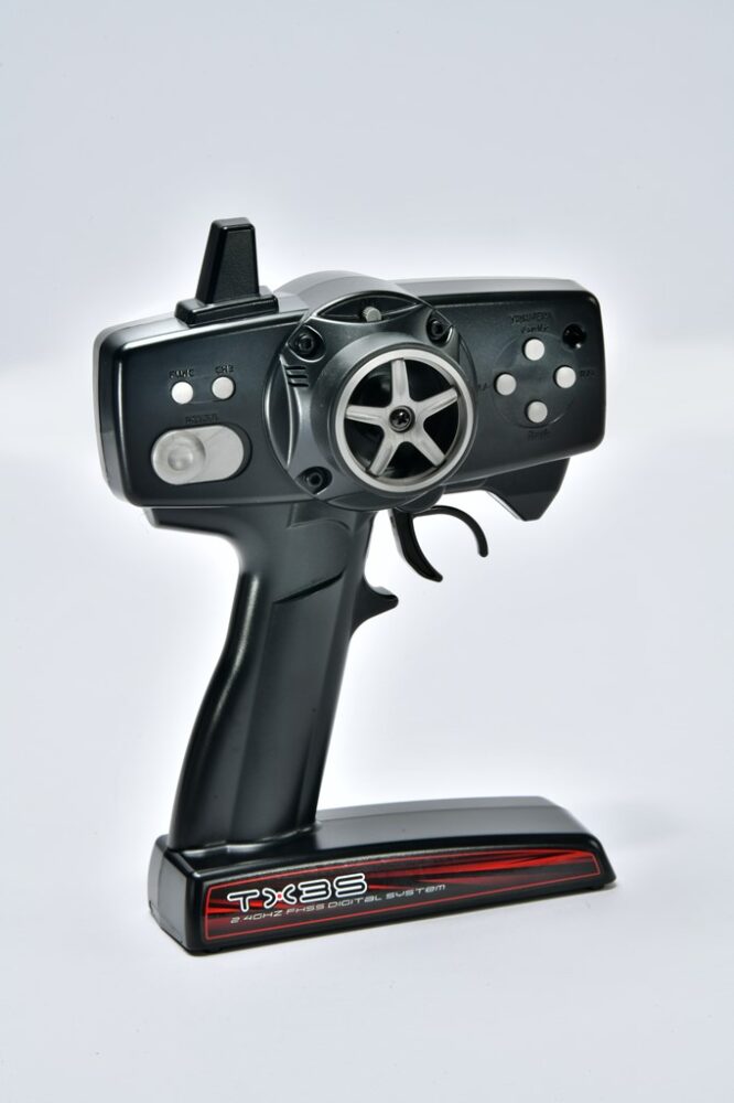 ホビーラジコンの楽しみ方のひとつが自分でシャシーを組み立てて、ボディを塗装するといった作業があるが、こちらは工場組み立て済みで出荷され、ボディも塗装済み。送信機などのメカ類の調整もされているので、箱から出してバッテリー(これも付属)を充電すれば、誰でもすぐにドリフト走行にチャレンジすることが可能。