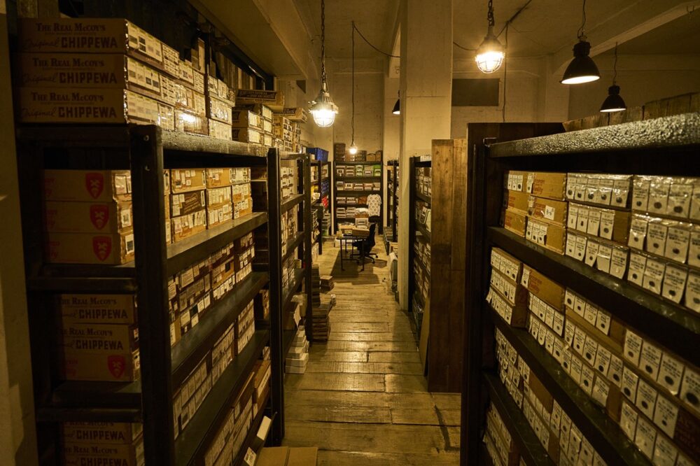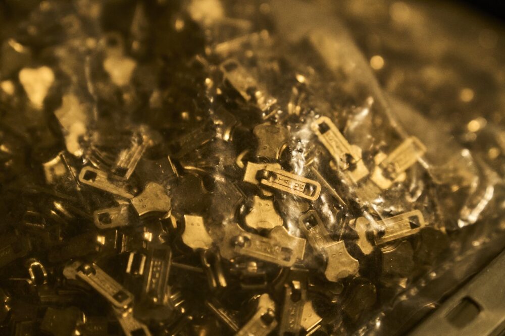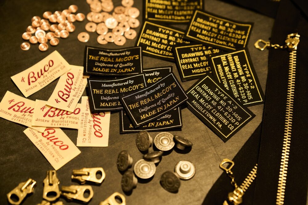 ボタンやジッパー、バックル、リベットなどのあらゆる部材は、ヴィンテージの未使用品からオリジナル品までストックされている。ファッションの世界に身を置く者ほど、「こんなものまで作っているのか……」とため息が出るだろう。なぜなら、型から起こして作るための最低ロット数を知っているからだ。例えば100着作るために、必要ならば何万個ものボタンも型から作る。妥協は一切ない。圧巻の光景だ。