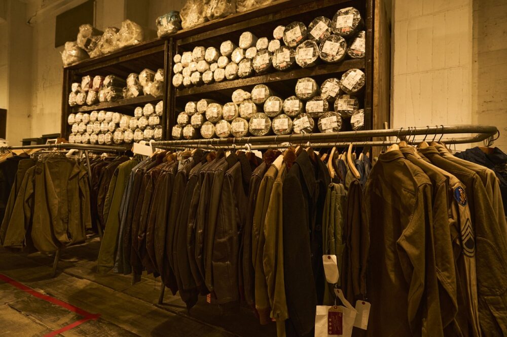 撮影時は大規模なリニューアル工事中ということもあり、ヴィンテージ古着がオフィス周辺に置かれていたが、実はアーカイブルームも存在する。ここにあるのはフライトジャケット系が中心。