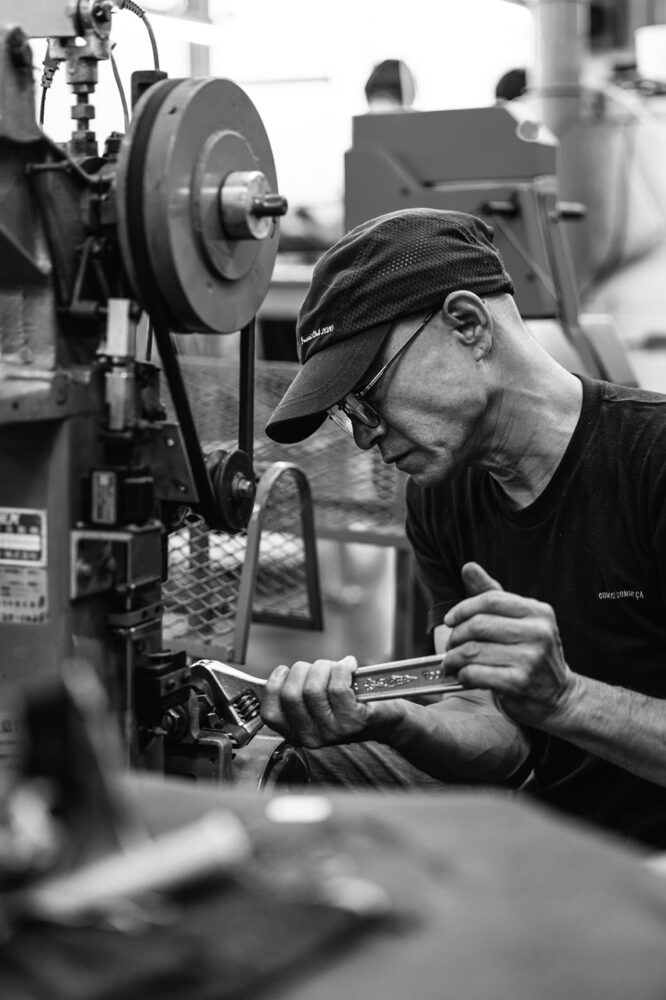 ここ栗原市にあるリアルマッコイズの工場では、20名ほどの職人の方が働いているという。元はデニムの縫製工場であったというが、現在ではナイロンフライトやワークウエアなど、レザー以外のアイテムを中心に作っている。