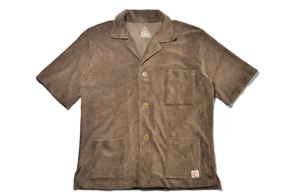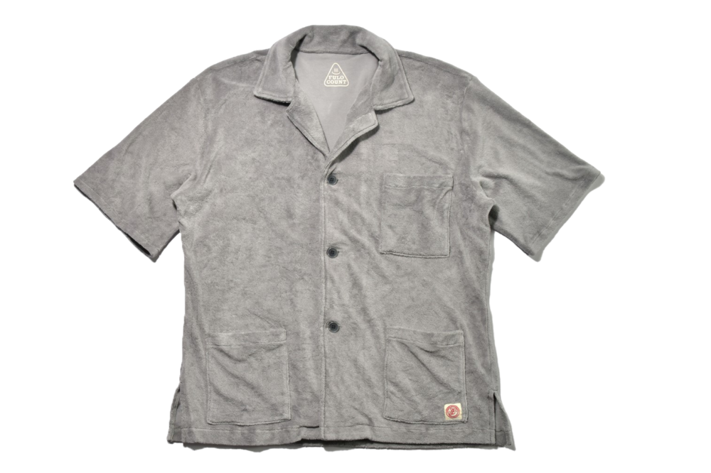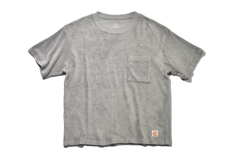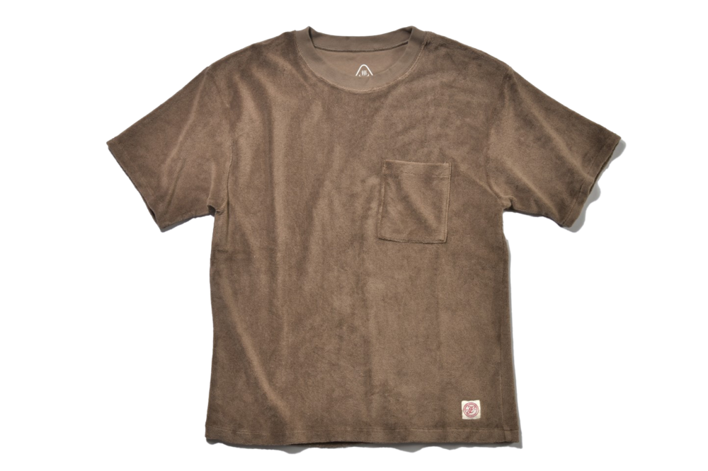 フロカウントが生地から開発したオリジナルのコットンナイロンソフトパイルを使ったTシャツ。保温性と吸汗性に兼ね備えていて、肌触りも抜群なので整った風呂上がりに着るのに最適。カーキとグレーの2色展開。1万1000円