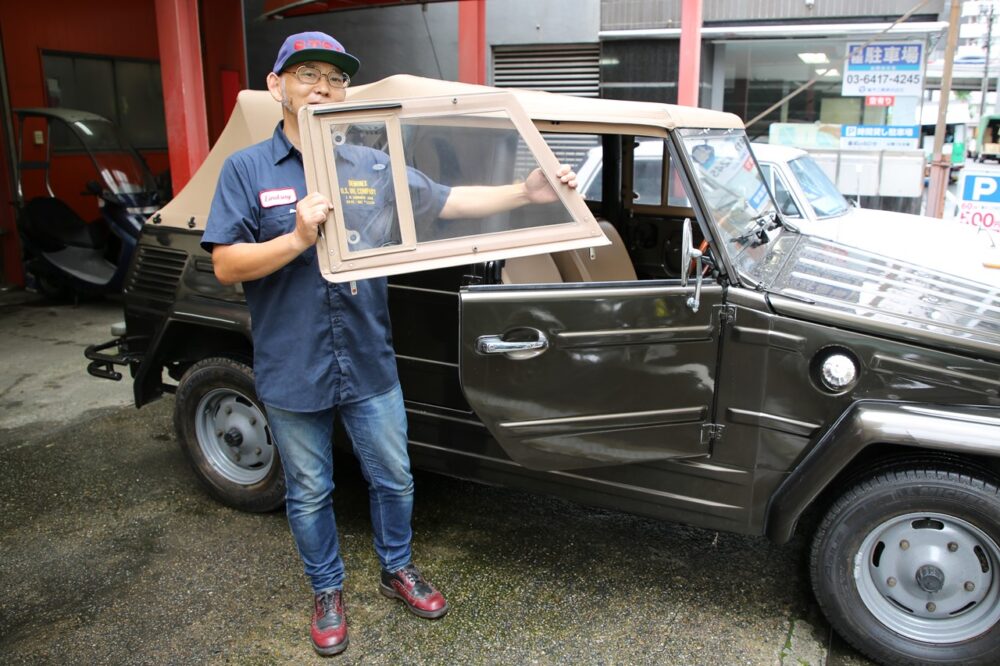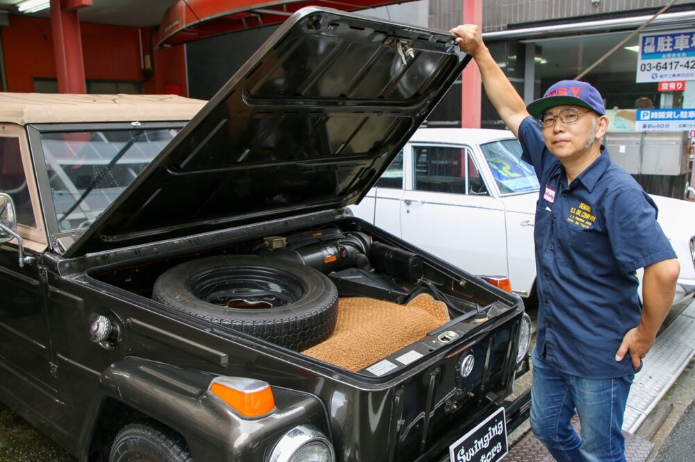国産旧車以外にも、横田さんのお眼鏡にかなったクルマがスウィンギンモータースの店頭に並ぶ。このフォルクスワーゲン・タイプ181クーリエワーゲンもそのひとつだ。