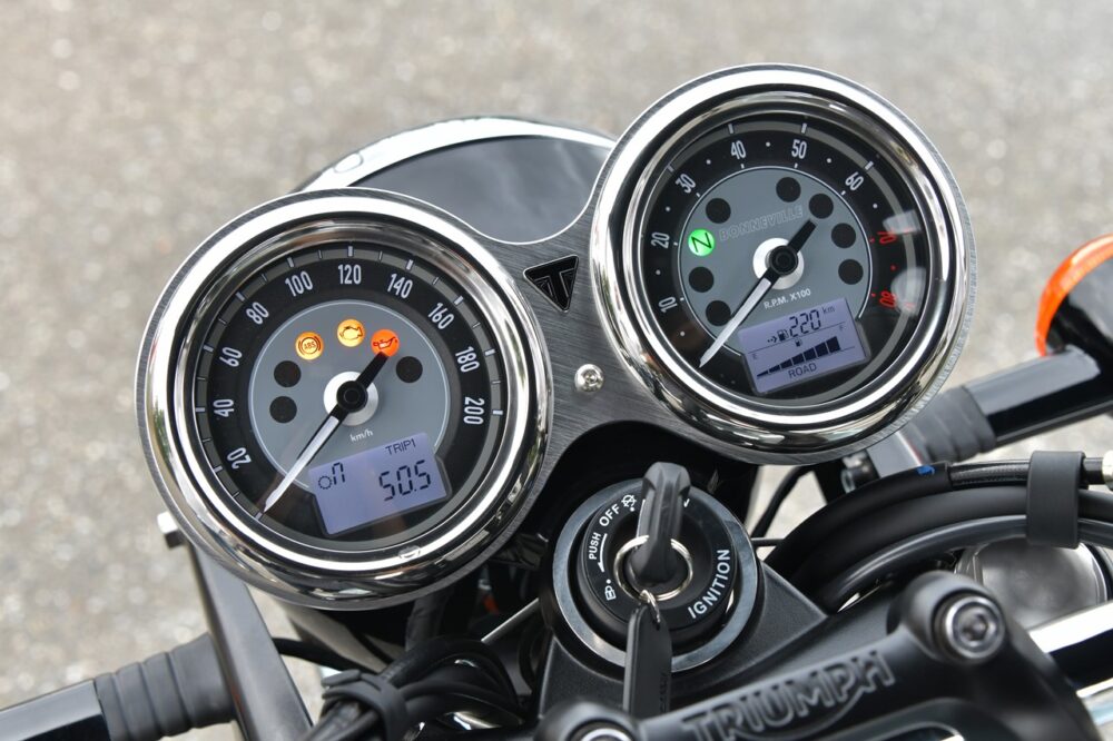 速度計と回転計が独立したメーター。デザインも凝っており、機能だけでなく質感にもこだわりを感じさせる。