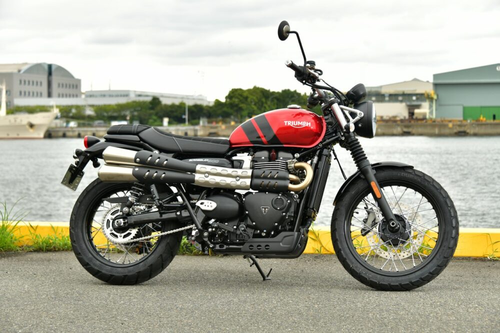 そんな休日の相棒にふさわしいのが、トライアンフのバーチカルツインエンジンを搭載したモダンクラシックシリーズ。中でもT100とスクランブラー900は、街乗りから高速走行までバランスよく楽しめる899㏄というちょうどいい排気量。クラシックな顔つきだが最新のバイクなので、肩の力を抜いて心地よく自分