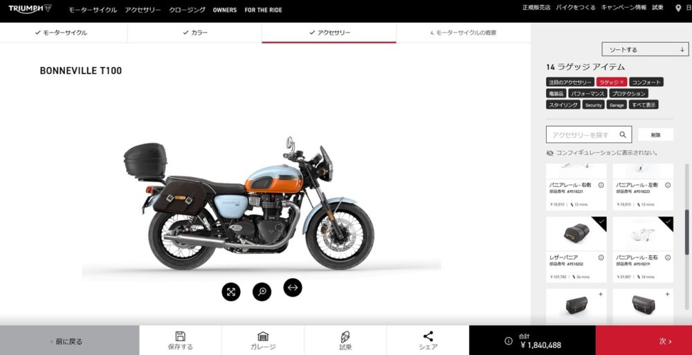 トライアンフ公式WEB で自分だけのバイクを作る。