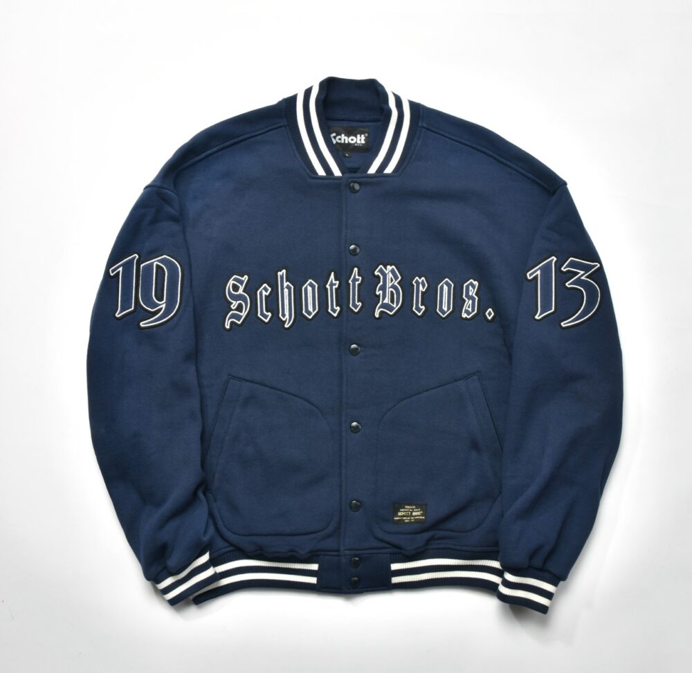 スウェット素材をスタジャンに落とし込んだショットの意欲作。肉厚ながら肌触りのいいスウェット生地を用い、ストリート感のある肩の落ちたパターンを取り入れており、コーディネイトに取り入れやすいのも嬉しい。1万6500円