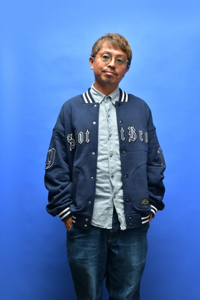 【VARSITY】スウェット素材だから気軽に羽織れるのが魅力。(ラーメン小池)