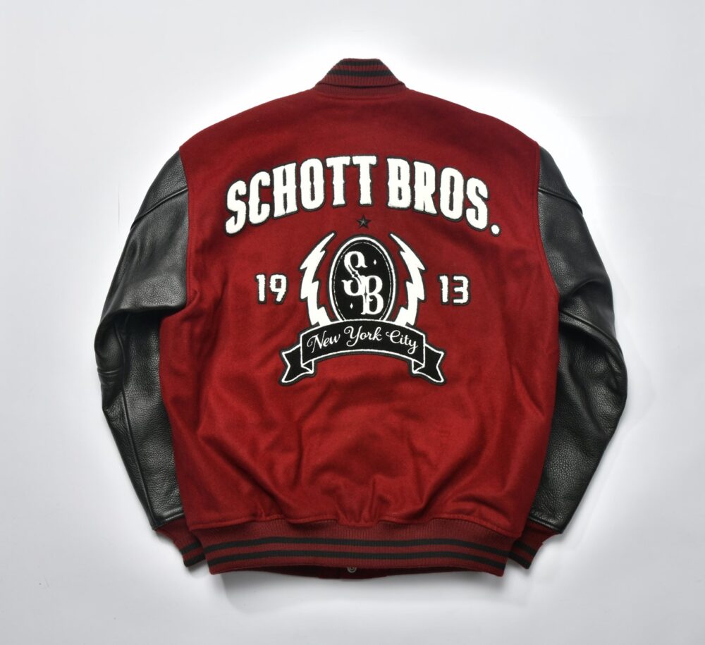 肉厚なウールメルトンと、袖にはカウハイドを贅沢に使ったバーシティジャケット。スタンダードなスタイルながら、ショットの創業年などをあしらったシニール刺繍でデコレイトされ、華やかな1着に仕上がっている。5万5000円