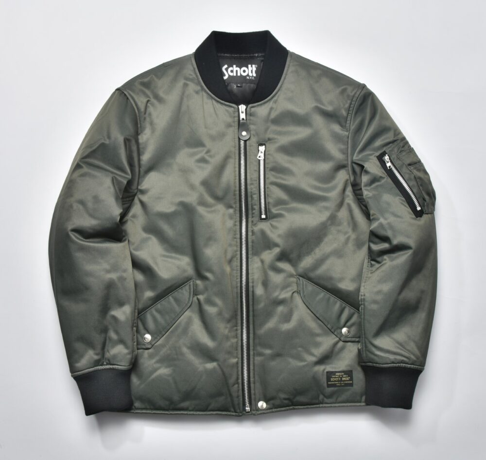 名作MA-1をベースに大胆にアレンジした、ショットらしさの光る1着。裾のリブを省略することですっきりしたシルエットを実現させ、オリジナル特有の野暮ったさを払拭。胸のジッパーポケットもアクセントになっている。2万5300円