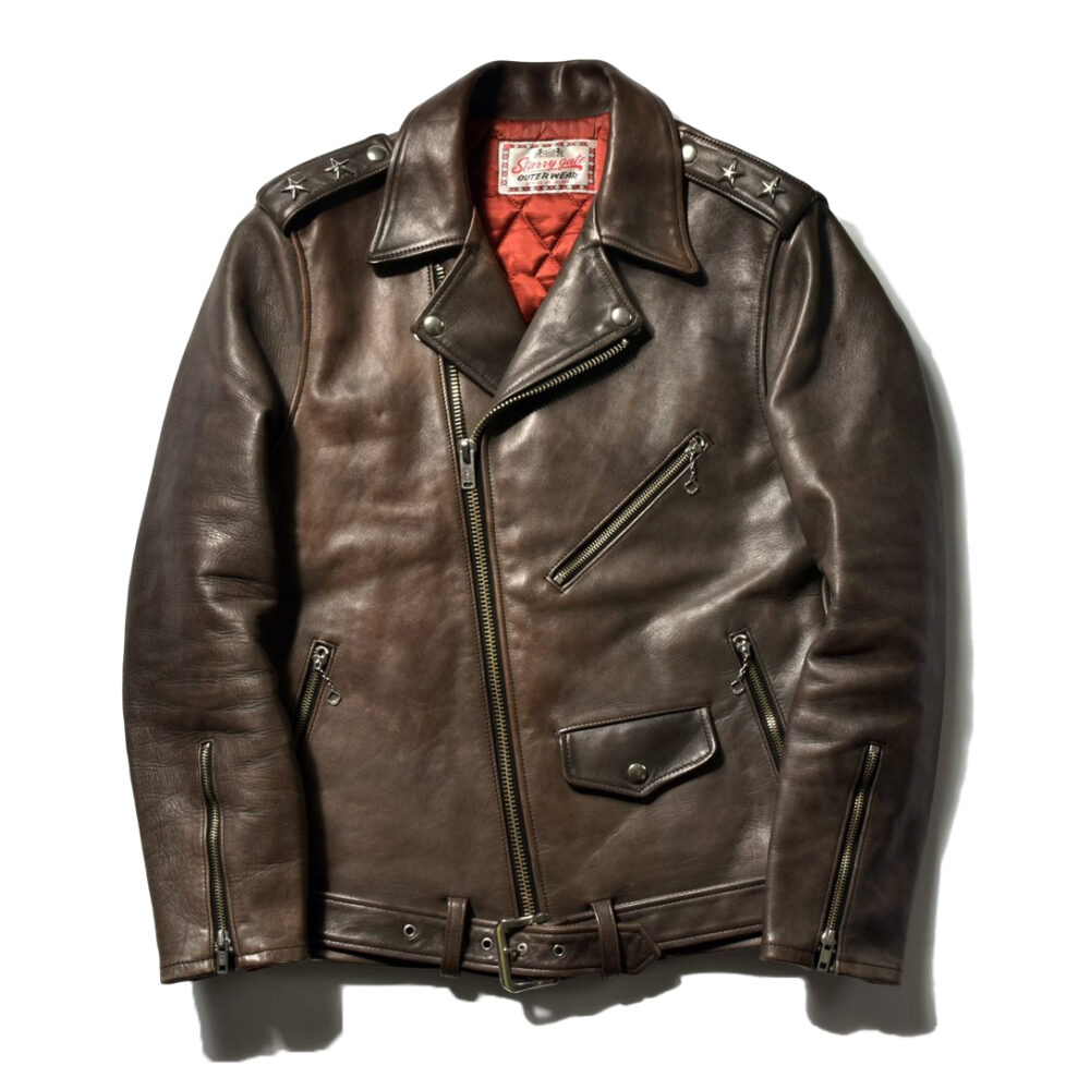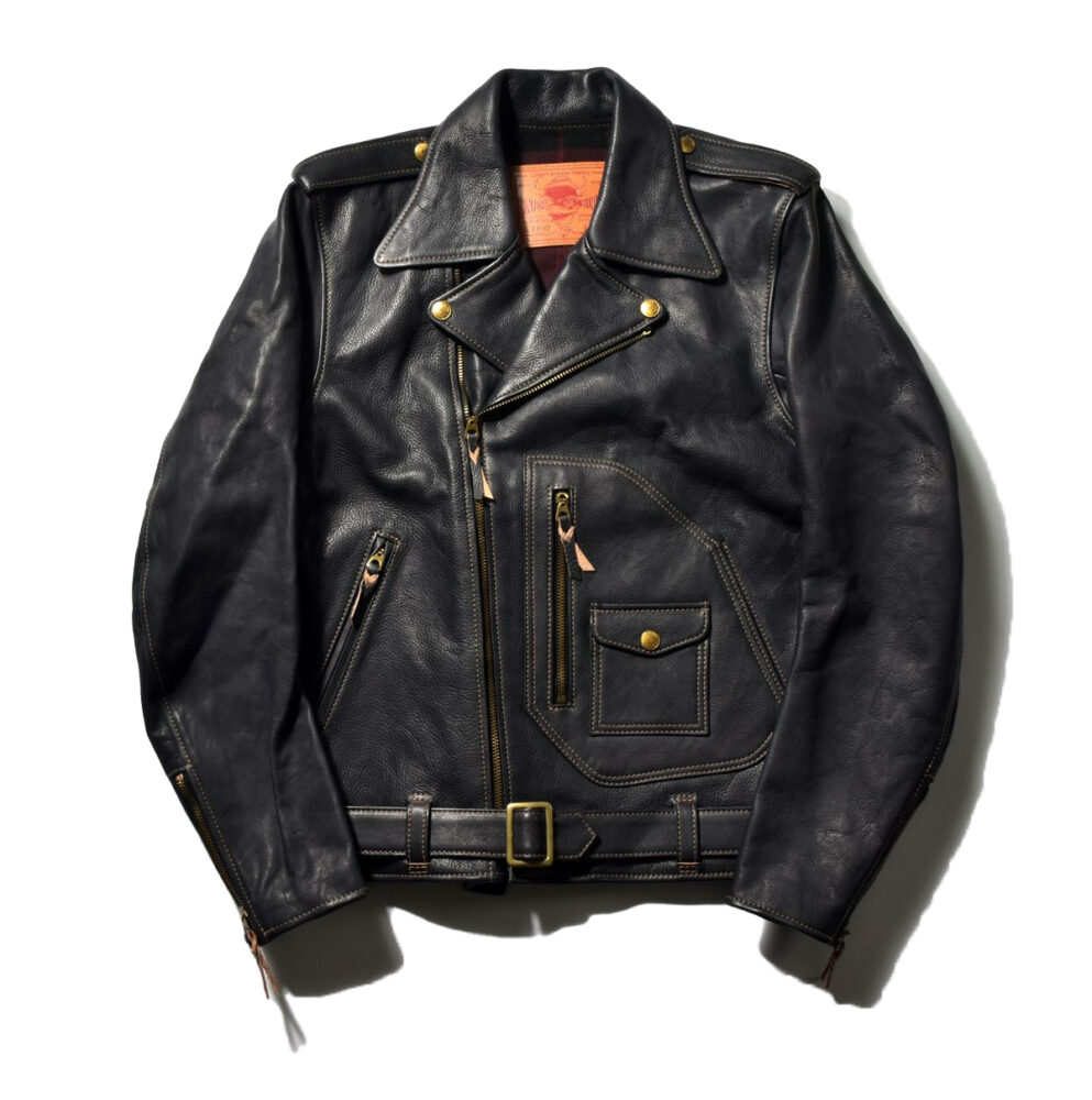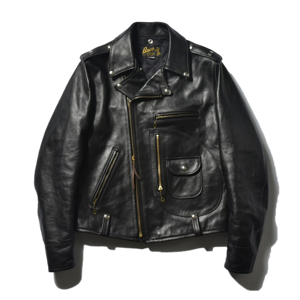 モーターサイクルアクセサリーメーカーとして一世を風靡したBUCOの名作J-24。その後のライダースに多くの影響を与えた。素材はベジタブル鞣しの馬革。27万5000円(リアルマッコイズ東京 TEL03-6427-4300)