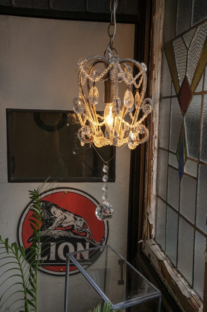各所にはアンティークのシャンデリアが多数。「意外と普段使いできますよ。クリスタル製がオススメです」