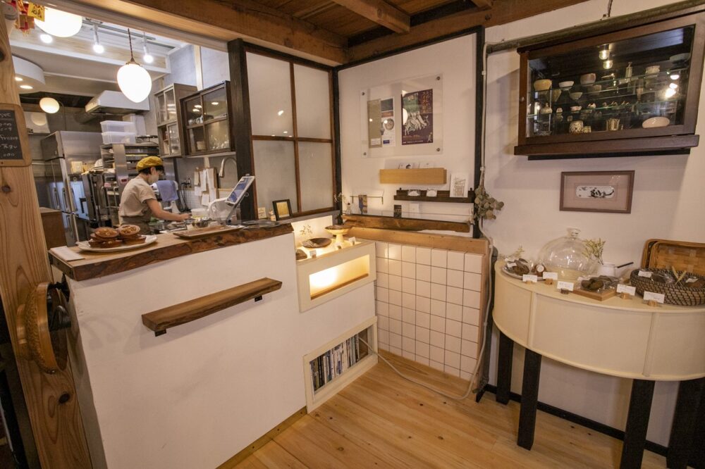 22年3月にオープンしたばかりの「こむぎと」。奥の業務用キッチンも手作り。これまでの経験を生かして保健所の審査も無事パスさせた。