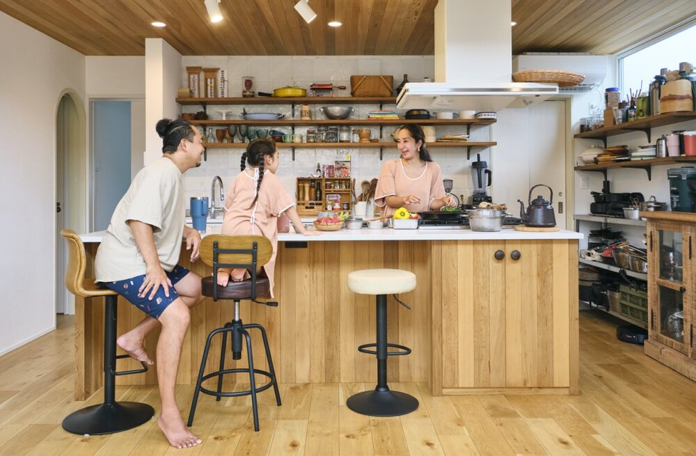 「友人が集まれる家にしたかったんです。大人たちはカウンターを囲んで料理やお酒を楽しみ、子どもたちはバルコニーでキャンプごっこを楽しんだり。あまり家具も置いてないから、リビングを広く使えるのもいいですね」
