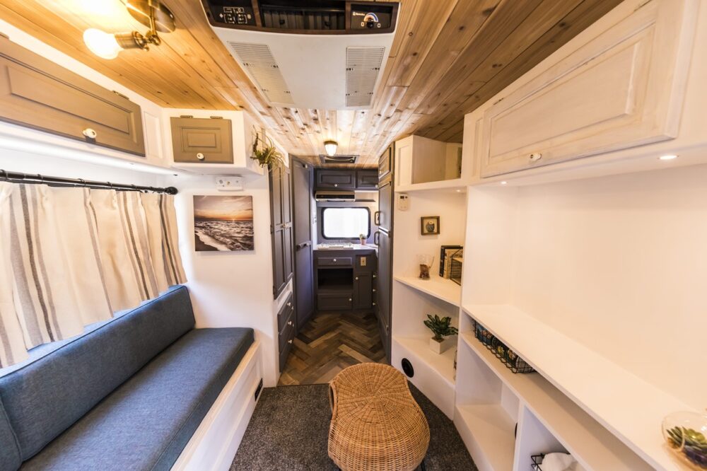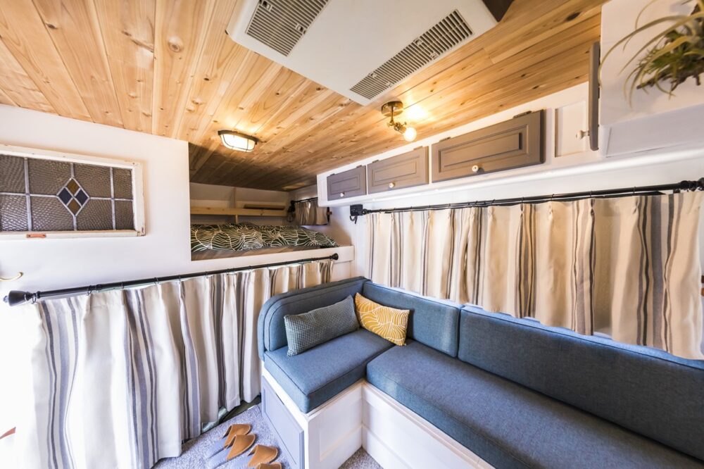 水野さんは『スターディ ラゲッジ サプライ』というレザーや帆布を使ったバッグとアパレルを展開するブランドを運営していることは本誌読者ならご存じのことと思うが、そのセンスを車内の雰囲気づくりや各ファブリックの選択などにいかんなく発揮。日本の「キャンピングカー」とはまったく別モノの、まるでサーファーズハウスのような居心地のいいモーターホームに仕上げている。