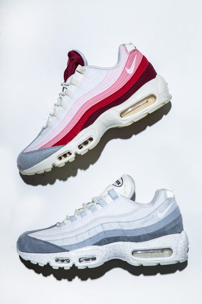 1995年に登場し、一世を風靡したエアマックス95。このナイキ エアマックス95QSは、デザイン案にリライトしたカラーリングで展開。どちらもモチーフとした人体を感じさせる配色だ。各2万900円