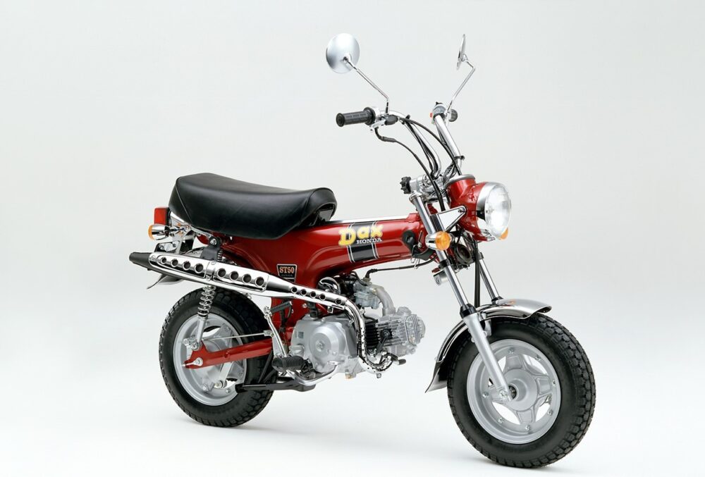 こちらが1969年に登場した初代ダックス。1967年に登場したモンキーに続く、ホンダのレジャーバイクのひとつ。ダックスの名前は犬種のダックスフンドから。世界中で大ヒットし、様々なバリエーションモデルも誕生した。