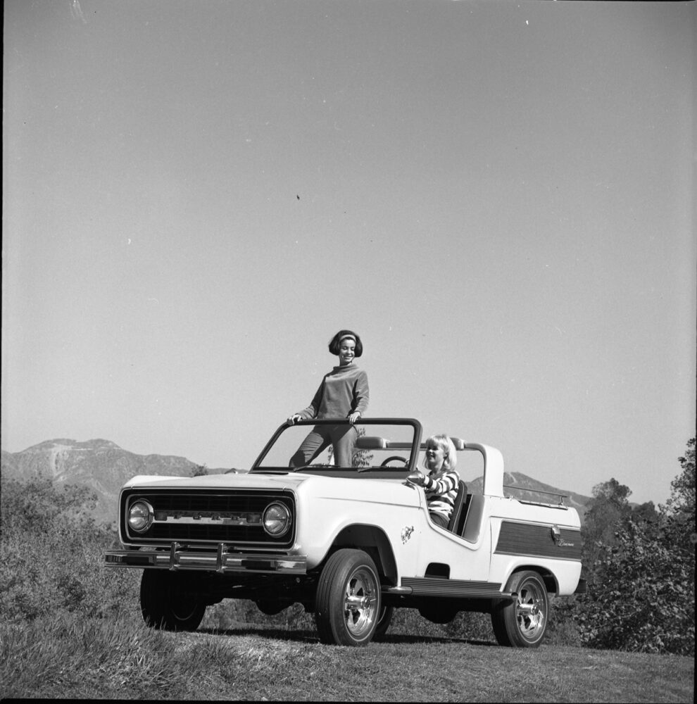 初代ブロンコは、ジープへの対抗馬としてスクエアなボディと四輪駆動システムを持つコンパクトSUVとして’66年に登場。ボディバリエーションは、ワゴン、ピックアップ、そして写真のロードスターが設定された。