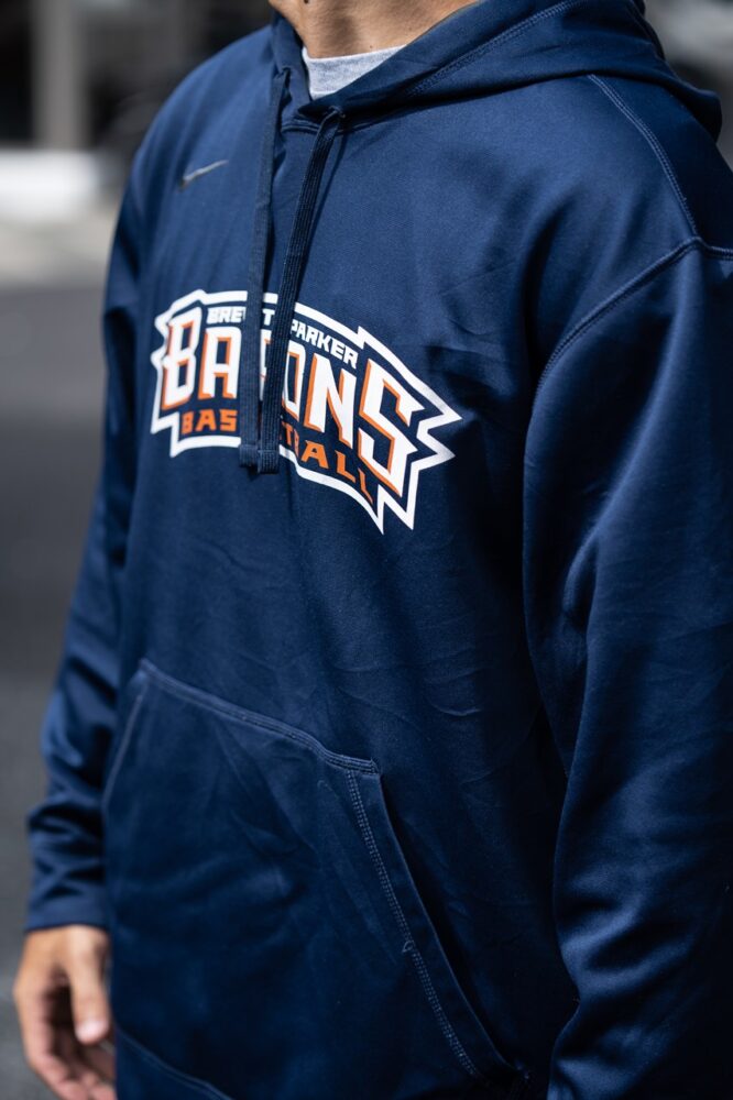 BBシャツをフーディにレイヤードしたラフな着こなし。シャツの存在感が強いだけに、他はシンプルなアイテムを選ぶのがこだわり。BBシャツは30代オーバーには懐かしい野茂選手の希少なLos Angelesロゴモデル。