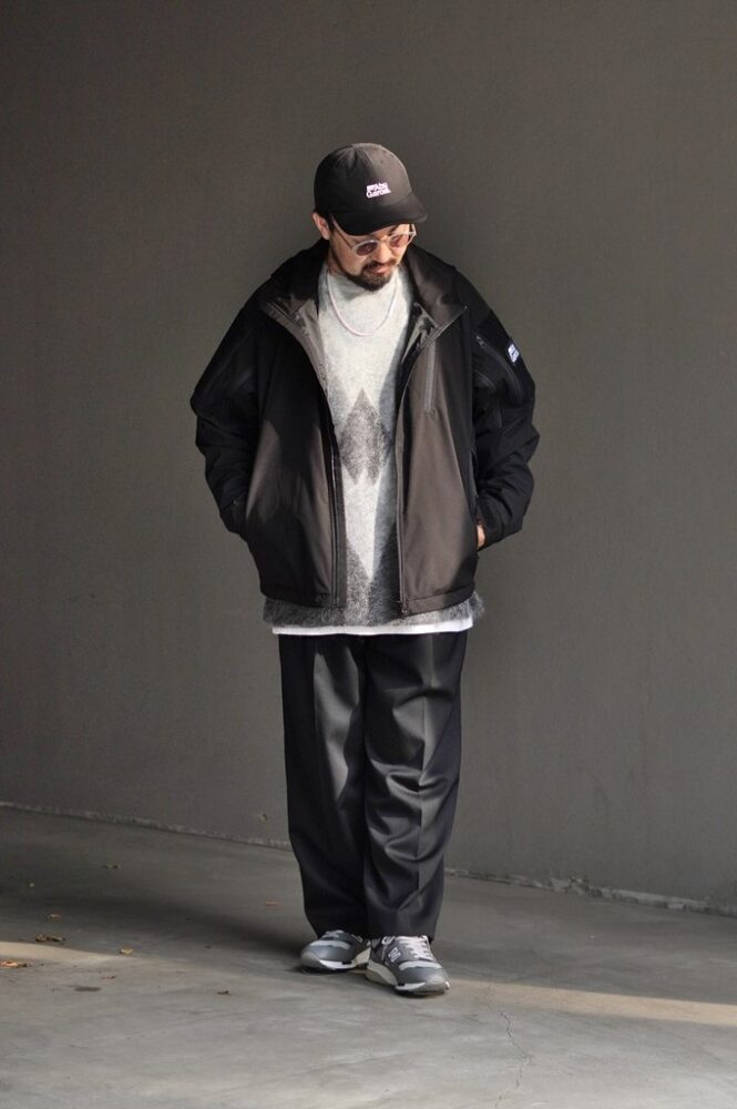 スウェーデン発のフィッシングギアメーカーであるアブガルシアの新作となるジャケットとキャップでスポーツミックスを体現。足元にボリュームのあるニューバランスを合わせることで、全体のバランスを取っている。暗めのトーンも好印象。
