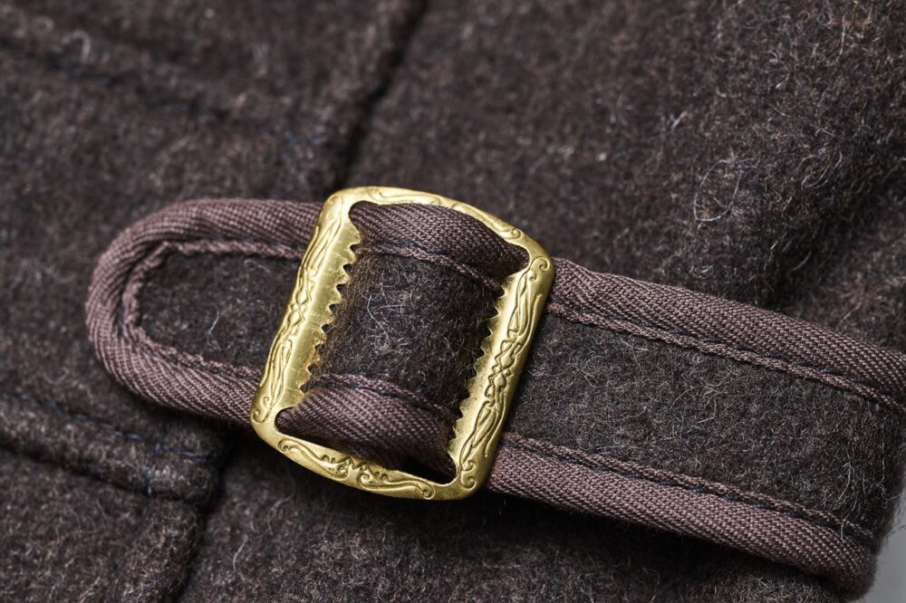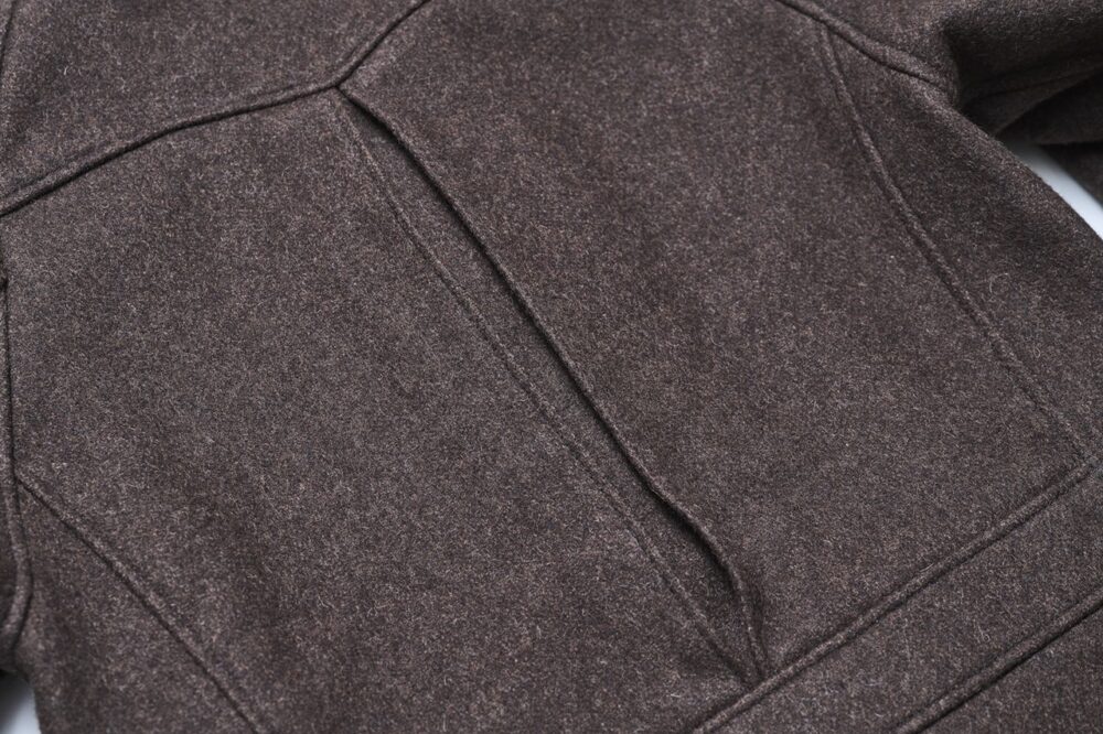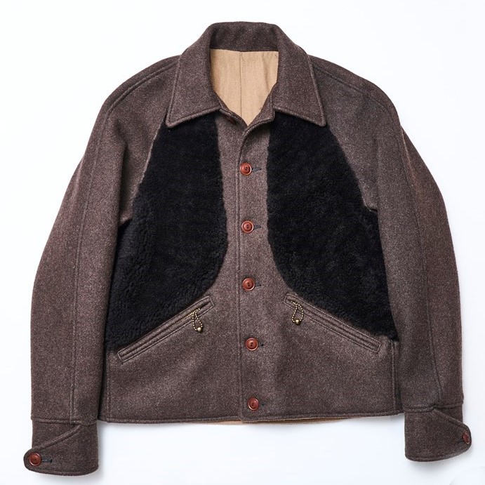 1930年代のウールグリズリーとスポーツジャケットをハイブリッドさせたダッパーズ解釈のスポーツジャケット。背面センターに大きく配されたプリーツや前身頃に付けられた上質なムートンがエレガントな雰囲気を演出している。カラーはブラウンとブラックの2色展開。