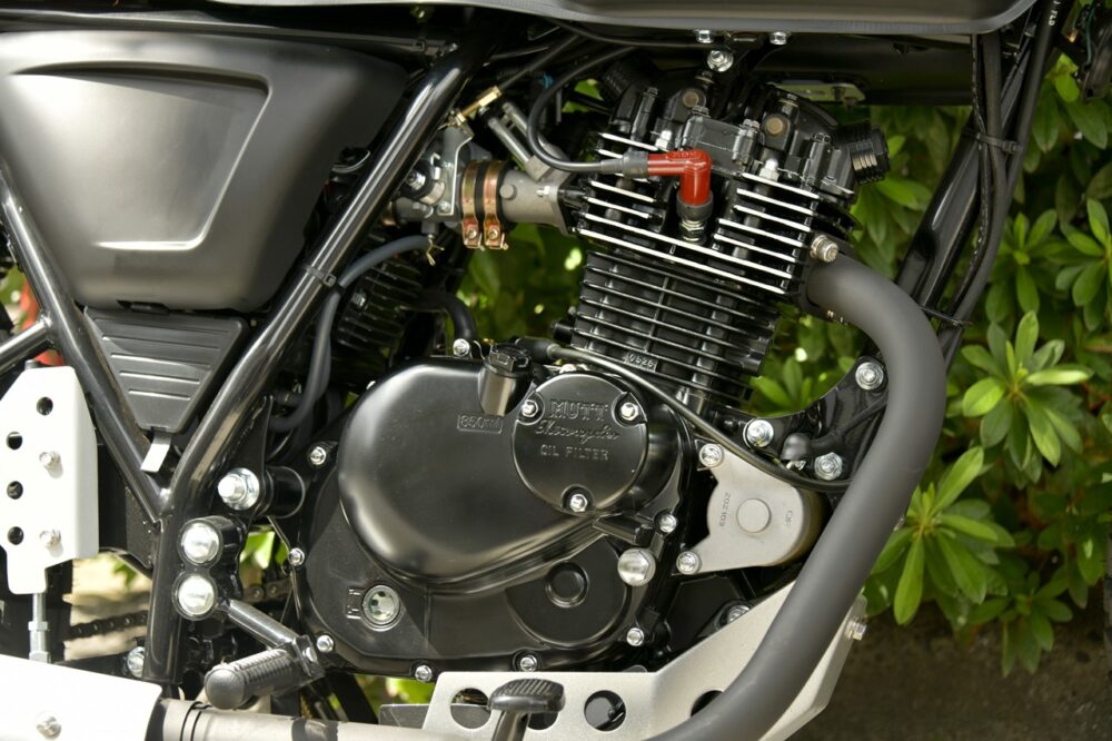 全長2020㎜ 全幅860mm 全高1080㎜ シート高820㎜ 乾燥重量125㎏ 排気量249㏄ 最大出力21hp 最大トルク20Nm 価格73万3700円