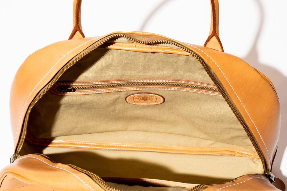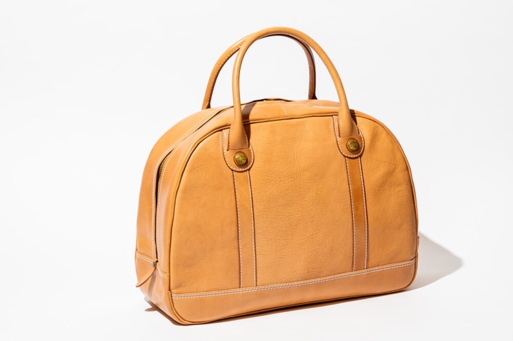 クラシカルなフォルムのボストンバッグ。二泊三日の旅行サイズにぴったりな、素材を活かしたミニマルなデザインが美しい。自立し、開口部がガバッと大きく開くため、収納物も出し入れしやすく、デイリーユースとしても使い勝手の良いデザイン。12万1000円