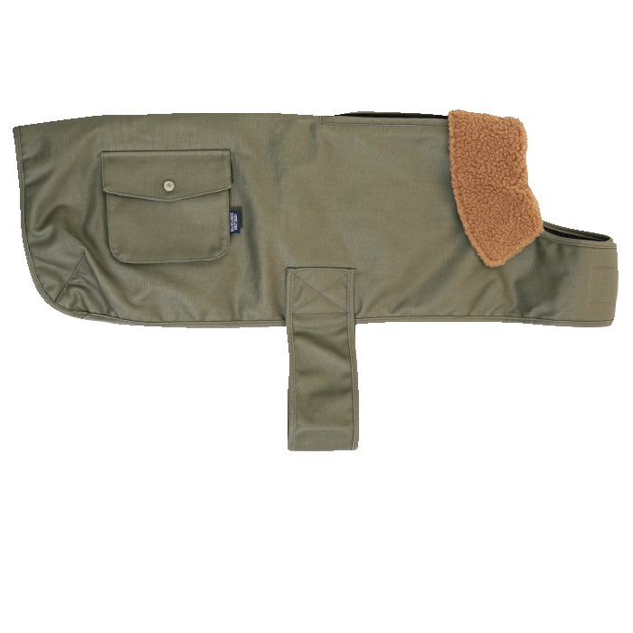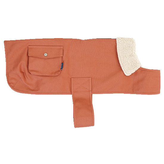 中・大型犬専用。マントタイプなので羽織るだけで着せやすく、裏は暖かいキルティング。背面のファスナーは長めなので、ハーネスの上からも着用可能。便利なポケット付き。6380円(4L)