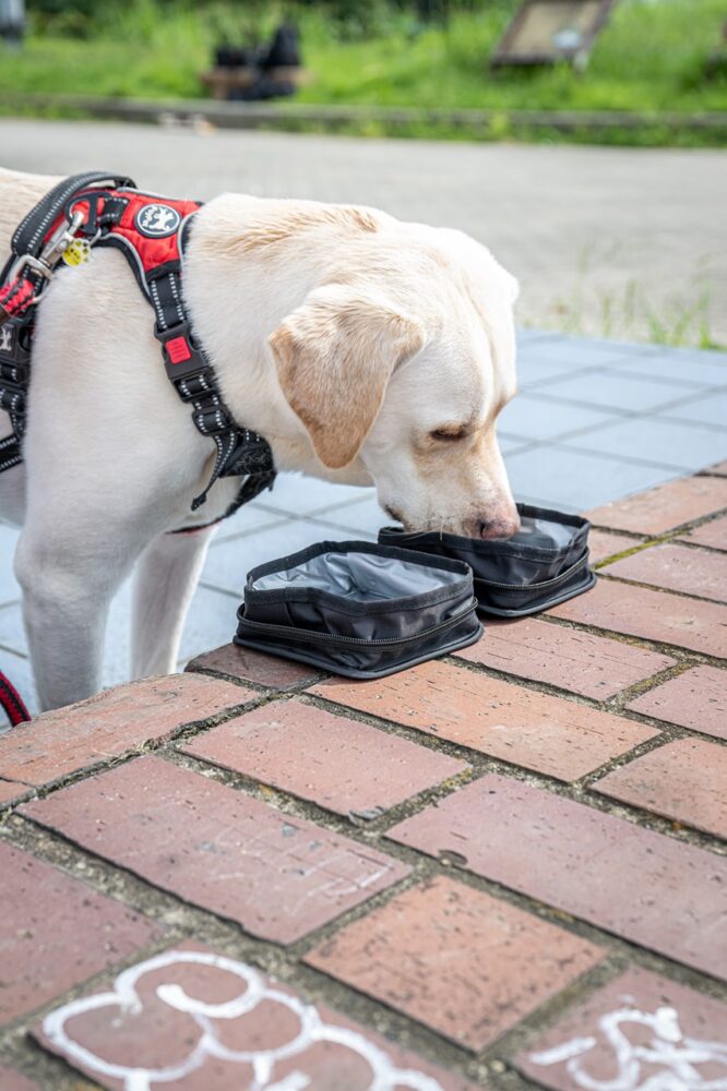 「フードボウルはゴム製が多いイメージなんですけど、それだとすぐヒビが入ったり素材の劣化が早いんです。でもこれはそういうのもなさそうですし、持ち運びやすいように潰してコンパクトにもなるのですごい便利ですね。次は片側を餌にしてみようと思います」