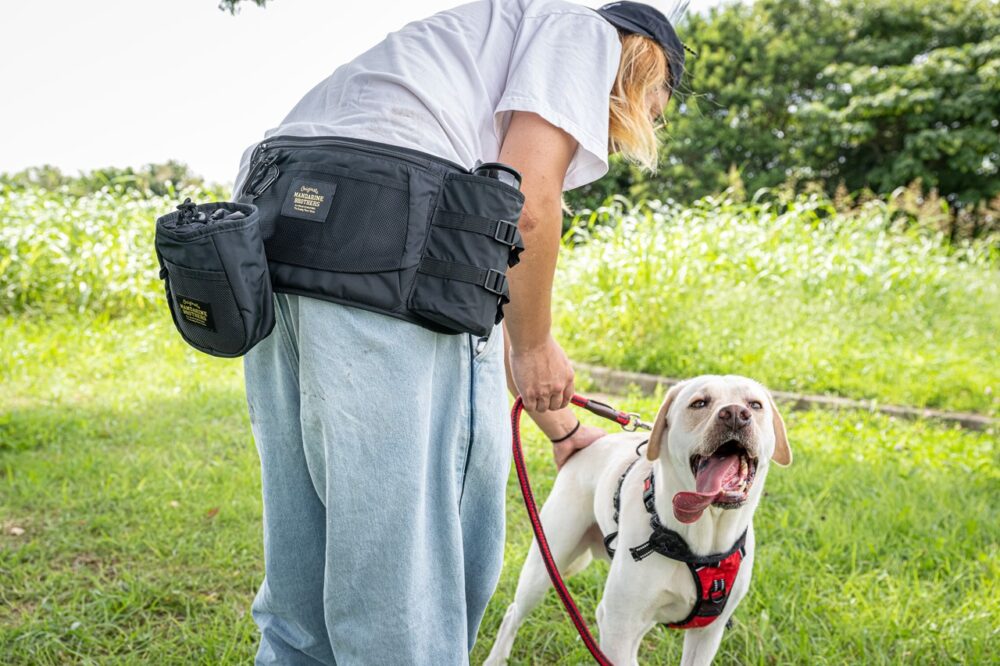 「散歩の時って片手はいつもリードを持つことになるので、あまり手に何かを持つことはしたくないんです。そういう点では、腰につけられるウェストポーチってすごく便利だなと思いました。このモデルはカラーリングでいろいろ遊べるところも良いですね」