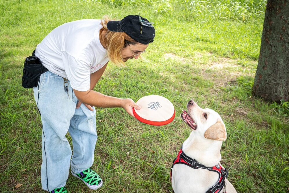 「これは素材が柔らかいから犬に優しいですよね。プラスチック製のフリスビーを投げて、フラットな路面に落ちると、口で咥えることもままならなかったりします。これも最初は苦戦してましたけど、慣れてきたらスムーズにできてたので、咥えやすいのも良いなと思いました」