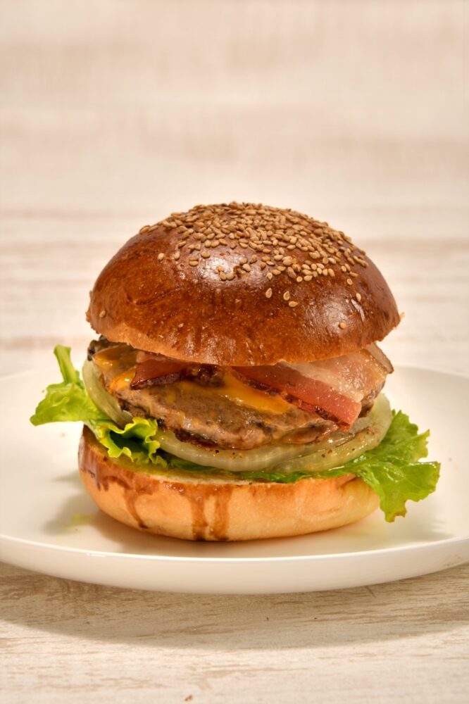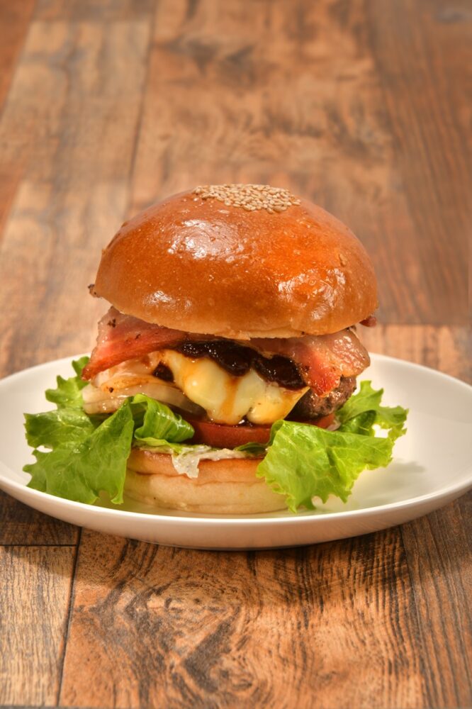 オリジナル全粒粉バンズと粗挽きのビーフパティを使ったアメリカンスタイルのハンバーガーショップ。定番メニューのほか、ユニークな食材を合わせたバーガー、トレンドをとらえた限定商品も提供するなど、訪れるたびに新しい味に出会えるのも人気の理由だ。今回作るのは、熟成ベーコン付きのバーガーをいざ試食。