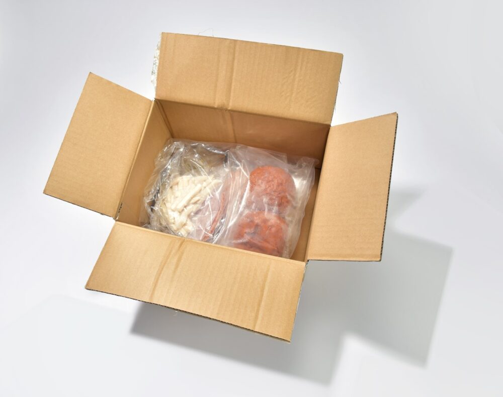 シイタケマッシュルームコンポートやパルメザンフリコなど特製のトッピングも付属。商品が到着したら、バンズやパルメザンフリコ、UMAMIダストは箱から出して常温で保存。