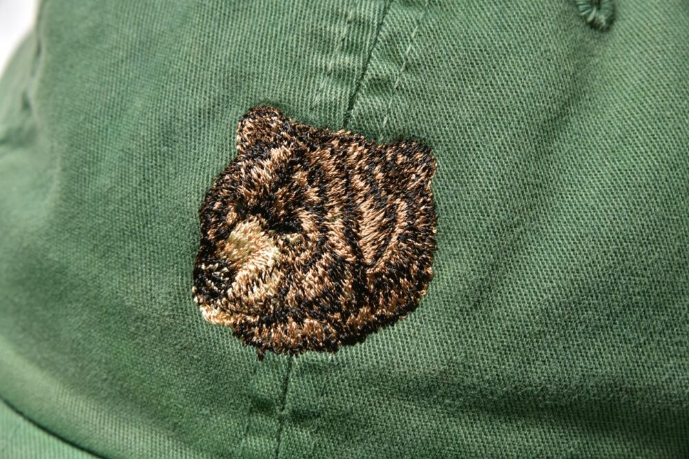 で、この帽子の刺繍を見てほしい。もう見るからに“アメリカしてる”でしょ。いかにも目が詰まった硬そうな刺繍で、繊細じゃなくて程よく“ヘタウマ”で。でもこれって狙ってできるものじゃない! これがアメリカンの魅力なのであります。私はこの熊と、ベージュのトラウトもGETしたが、本命はやはり熊。ある時、これを被ってウエアハウスの藤木さんとのミーティングに行ったら、「めっちゃええやん!」と入れ食い状態でした。やっぱり好きな人にはこの佇まい、わかるんだな~(笑)。