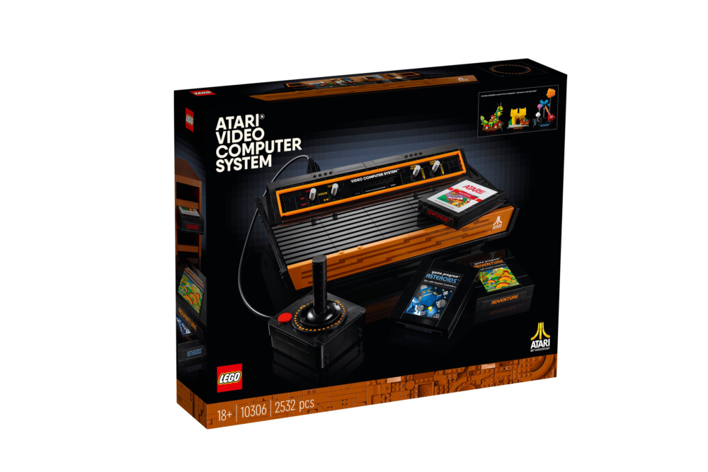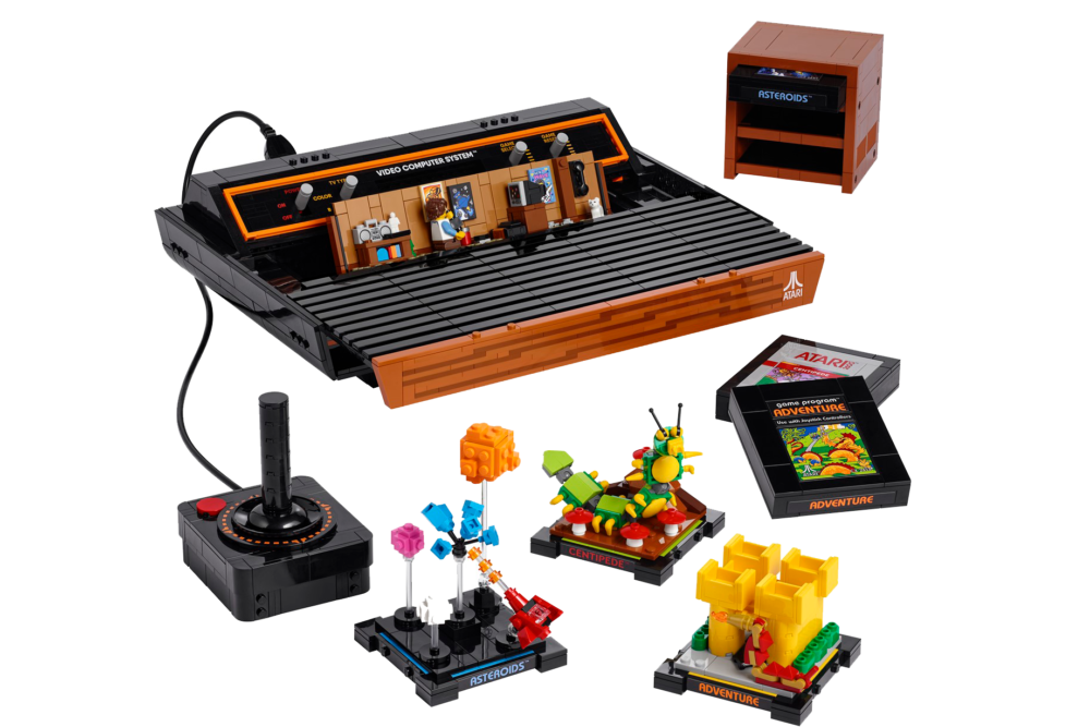 ゲームを内蔵式ではなく、カセットで供給する方式を採用した初の家庭用ゲーム機。『アステロイド』など懐かしいタイトルのカセットやリアルな動きと質感のジョイスティックもブロックで再現。オープン価格