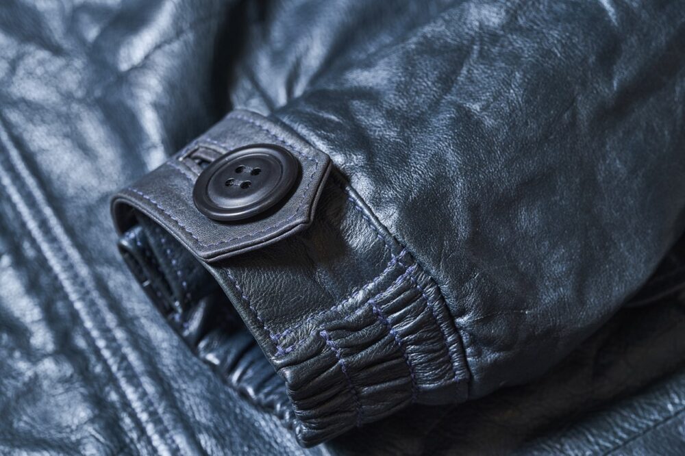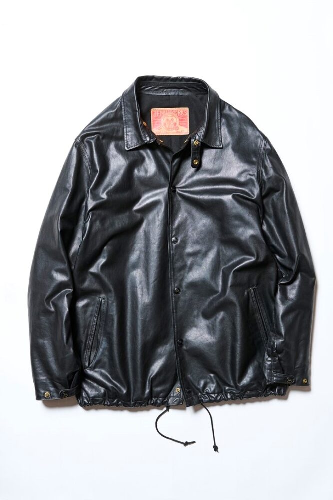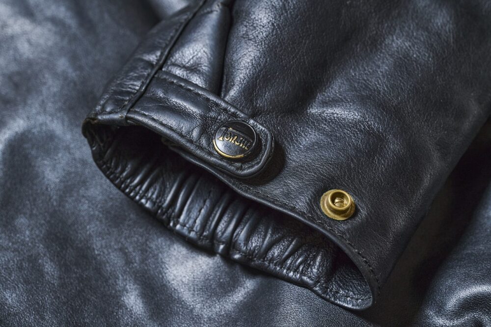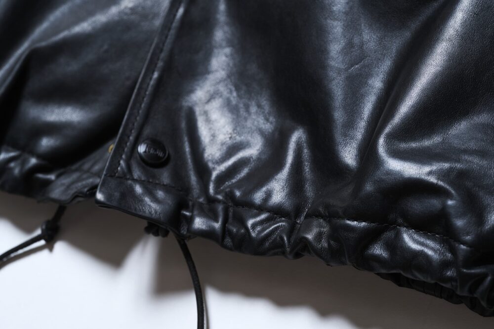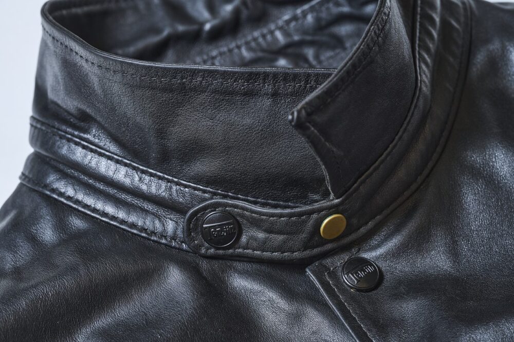 本来レザーコートって、重いイメージがあるじゃない? でもこいつは違う。これこそが、キップレザーの凄さ。しなやかで軽くてきめ細やかでとにかく丈夫。一度キップの軽い着用感を味わってしまうと、ホースやステアに戻れなくなるかも(笑)。手元に届いてからというもの、頻繁にこいつを着て出社してる。いまはまだTシャツに合わせてるけど、真冬になったら、レザーシャツやシングル&ダブルライダースの上から羽織るつもり。多分、すげぇあったかいはず(笑)。みなさんも是非革ジャンにFJ02を合わせてみてほしいな。