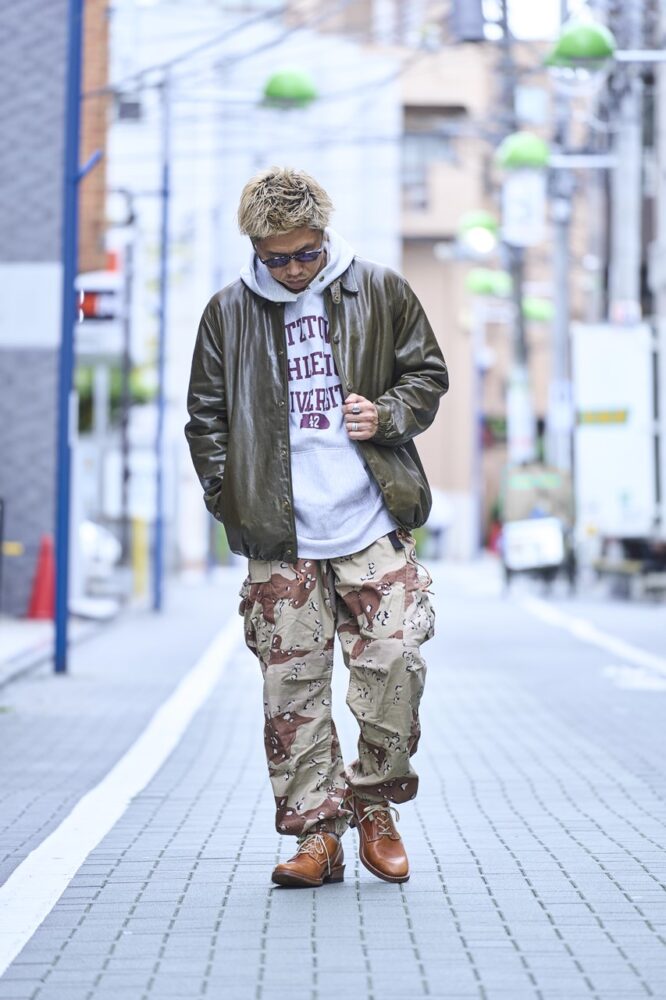 C’MAN COACHING JACKETのコーディネイトサンプル。