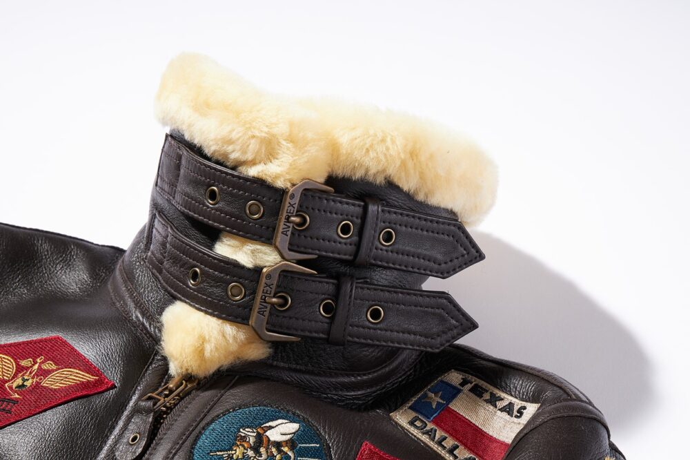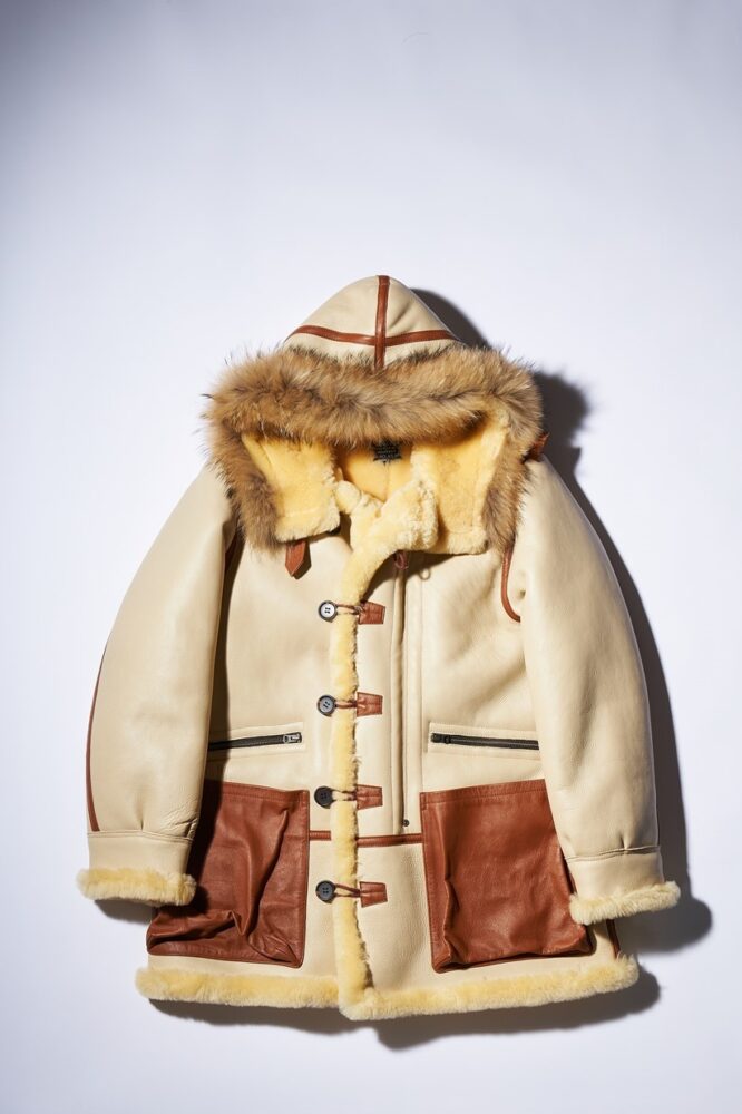 1941年に米陸軍航空隊がアラスカ駐在兵士用フライトジャケットとして支給したB-7。わずか1年のみの生産だったとされ、ムートンジャケットの中でも希少なモデルとされている。レザーパイピングやポケットなどコントラストも印象的。23万9800円