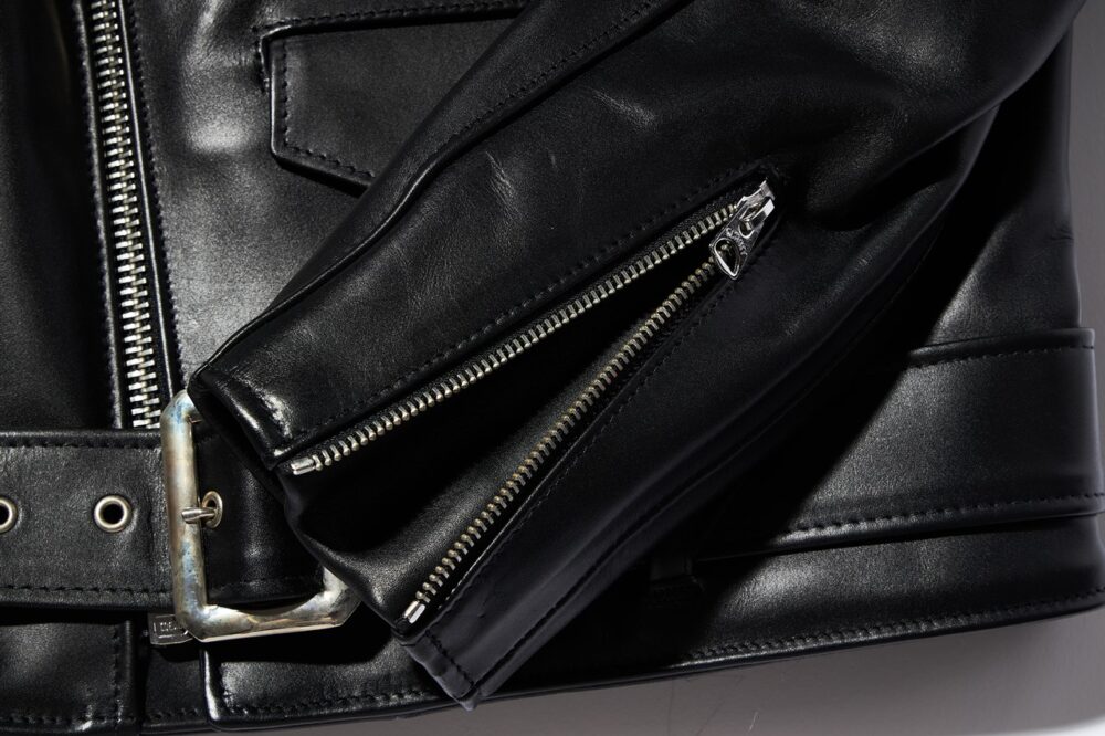 ワンスターの中でも人気の613UST をベースに、艶やかなホースハイドで作り上げたレザーラバー垂涎のモデル。最初は手強いが、着ていくうちに体に馴染み、ステアとは異なるエイジングを見せてくれる。14万3000円