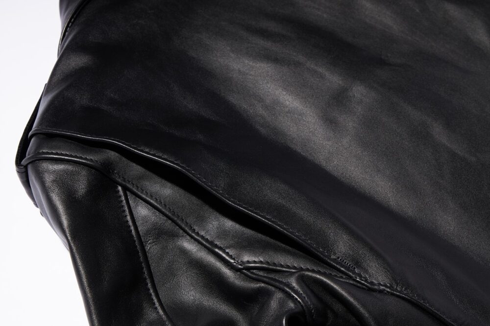 基本的な各部のディテールは613USを踏襲しているが、こちらは肩幅を細くし、着丈を若干長くしたTALLバージョン。全体的にすっきりとしたスタイリッシュなシルエットを持つ。素材は613同様の屈強なステアハイドで、買ったばかりの状態ではかなり「拘束感」があるが、着込むうちに革が馴染んでいくので心配は無用。13万2000円
