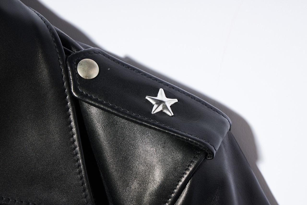 ワンスター・トールのすっきりしたシルエットをベースに、素材にはニューネイキッドカウレザーを使った人気モデル。厚みがありながらも非常にしなやかで、着用ストレスはほぼ無し。荒々しいシボが多く浮き出ており、革の表情を楽しみたい人にもおすすめだ。13万7500円