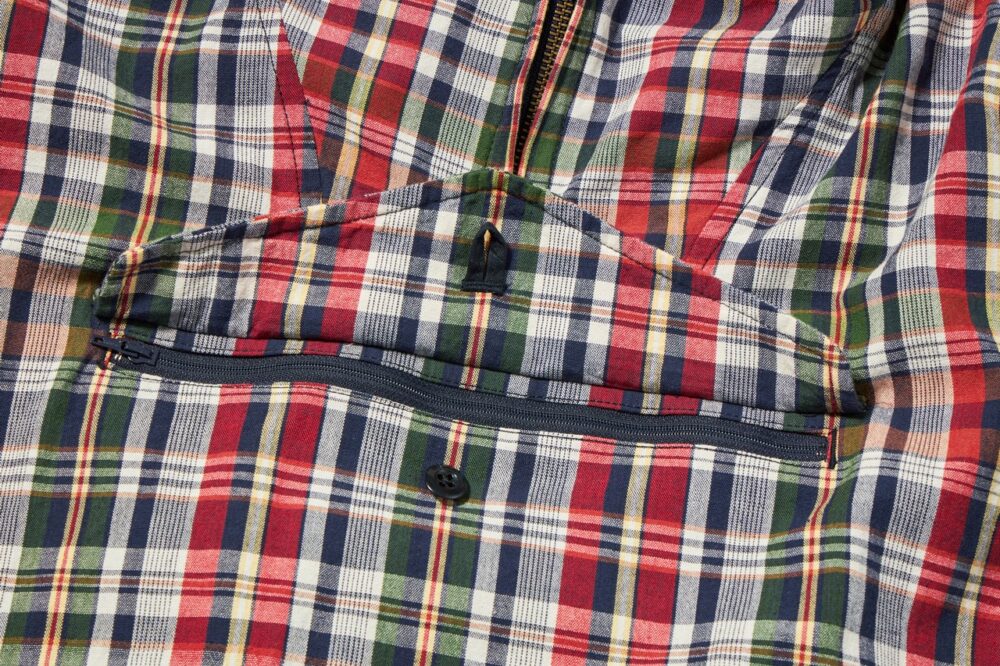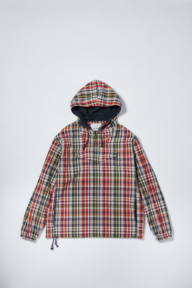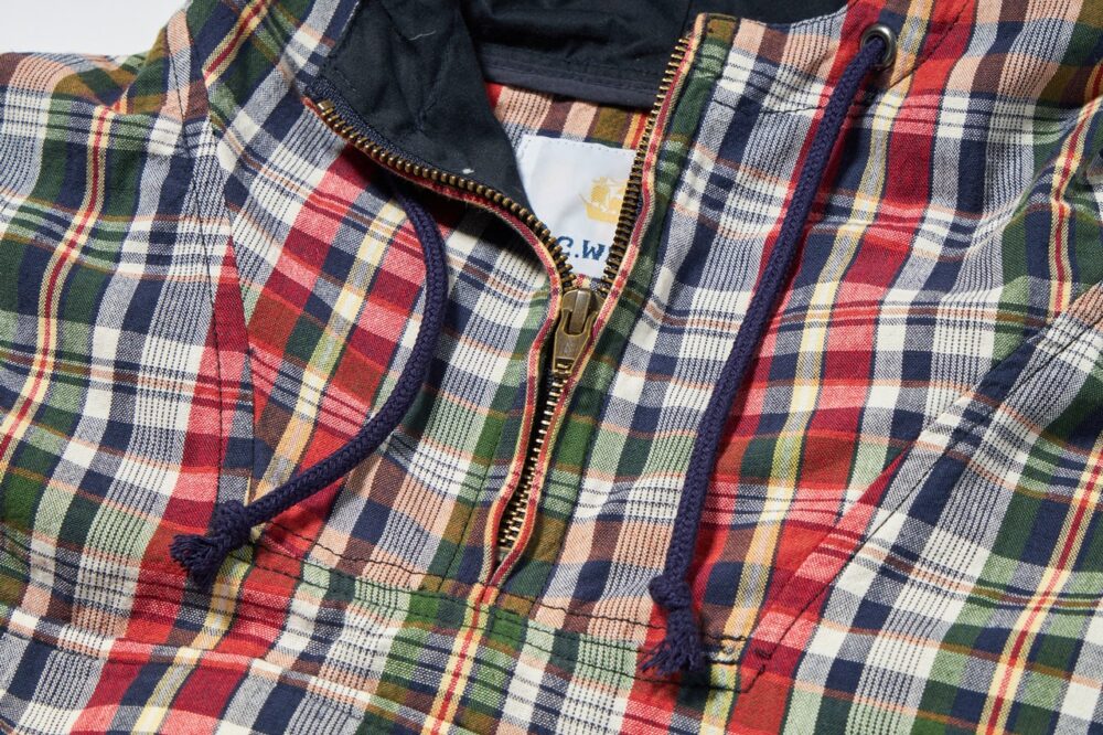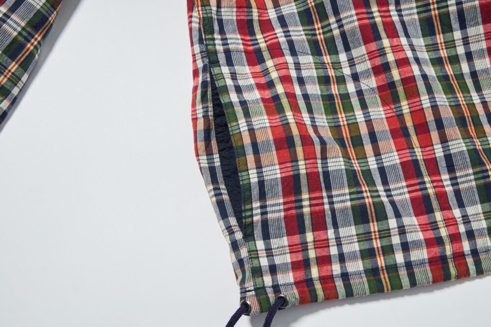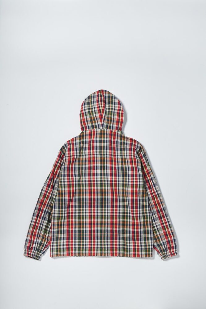 90 年代には数多く存在したものの、近年では見かける機会が少なくなったコットンのアノラックパーカをイメージソースに、マドラス柄、ではなく、正真正銘のマドラス生地で再現。柄合わせやパーツ選びに至るまで細やか。